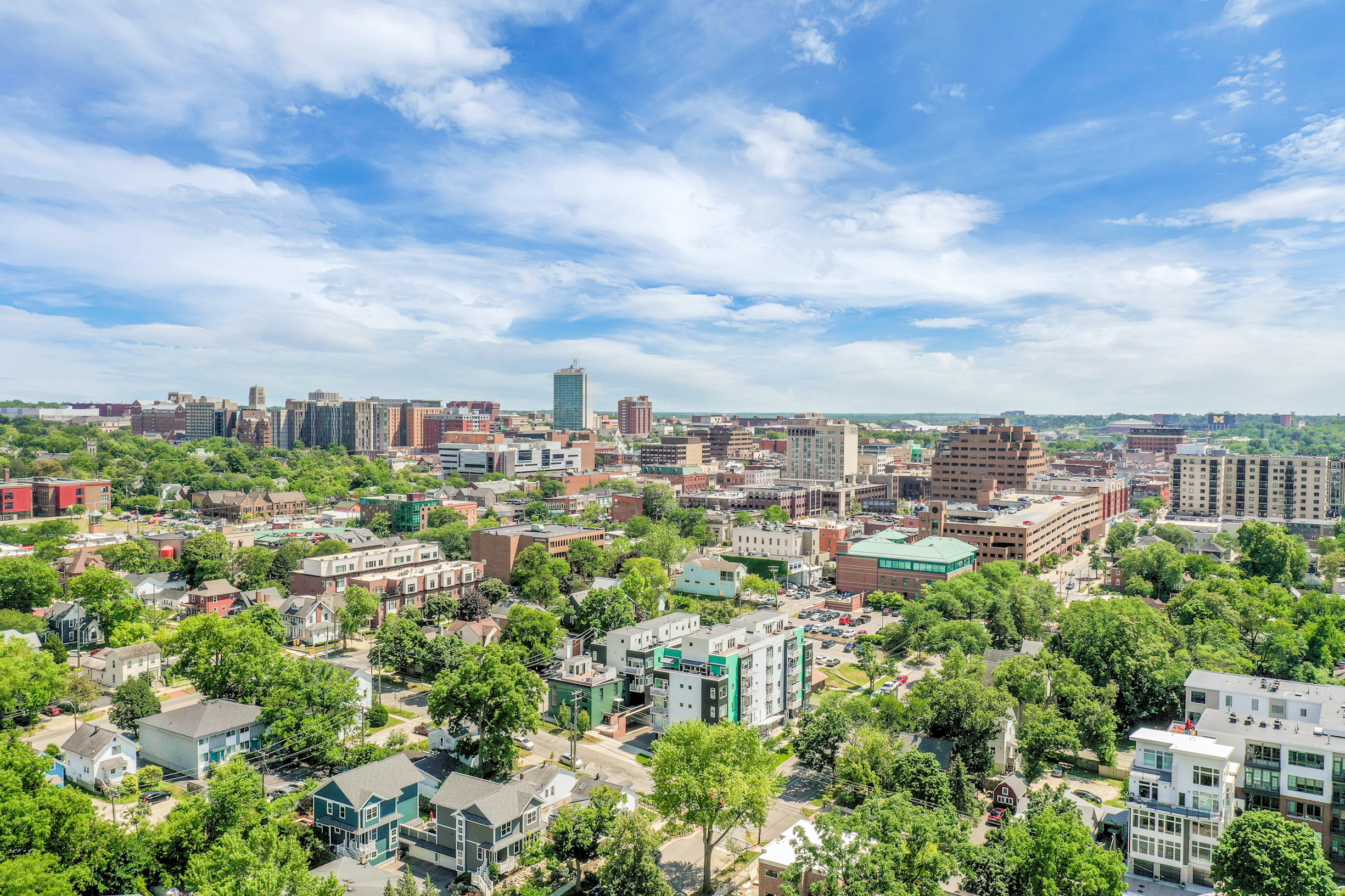 Aerial View of Downtown Ann Arbor in Summer Looking South